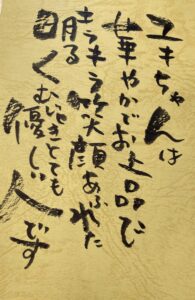 その褒め言葉を己書で葉書に書いてくれるとそれはもう立派なアート。